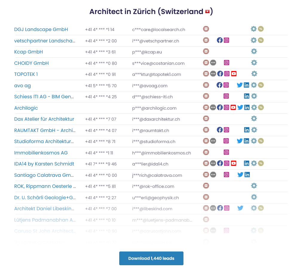 ➜ Portée internationale : Nos experts identifient pour vous des contacts B2B qualifiés dans plus de 150 pays, avec une segmentation fine par région.