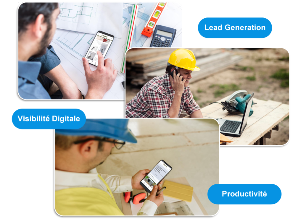 Notre plateforme clé en main est spécialement conçu pour les entrepreneurs du BTP, artisans en gros ou second œuvre, fabricants, distributeurs, paysagistes, architectes ou designers d’intérieur. Une solution unique pour gérer vos besoins de visibilité, de prospection et de marketing depuis un seul endroit.